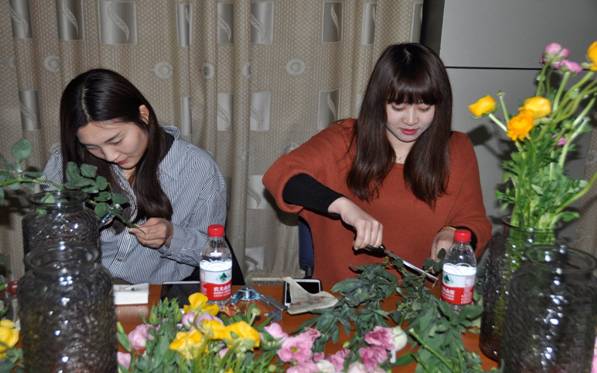 花藝主題活動(dòng)分為兩部分,一是從實(shí)用角度出發(fā),由花藝?yán)蠋煘榇蠹抑v解鮮花種類、花色搭配和鮮花保養(yǎng)等小知識(shí);二是讓女職工親手感受插花過(guò)程和掌握插花技能,在花藝?yán)蠋煹闹笇?dǎo)下進(jìn)行插花實(shí)操。