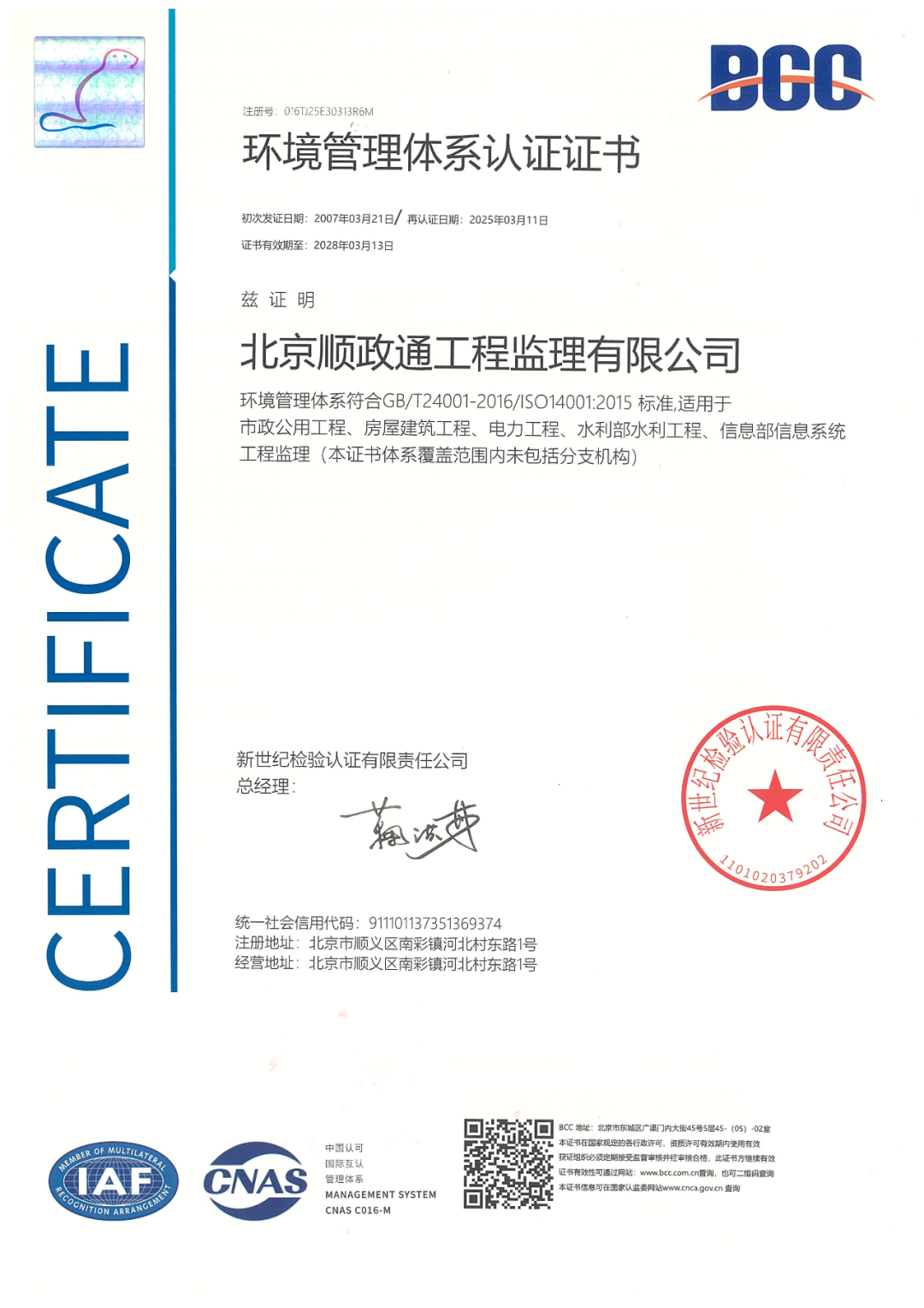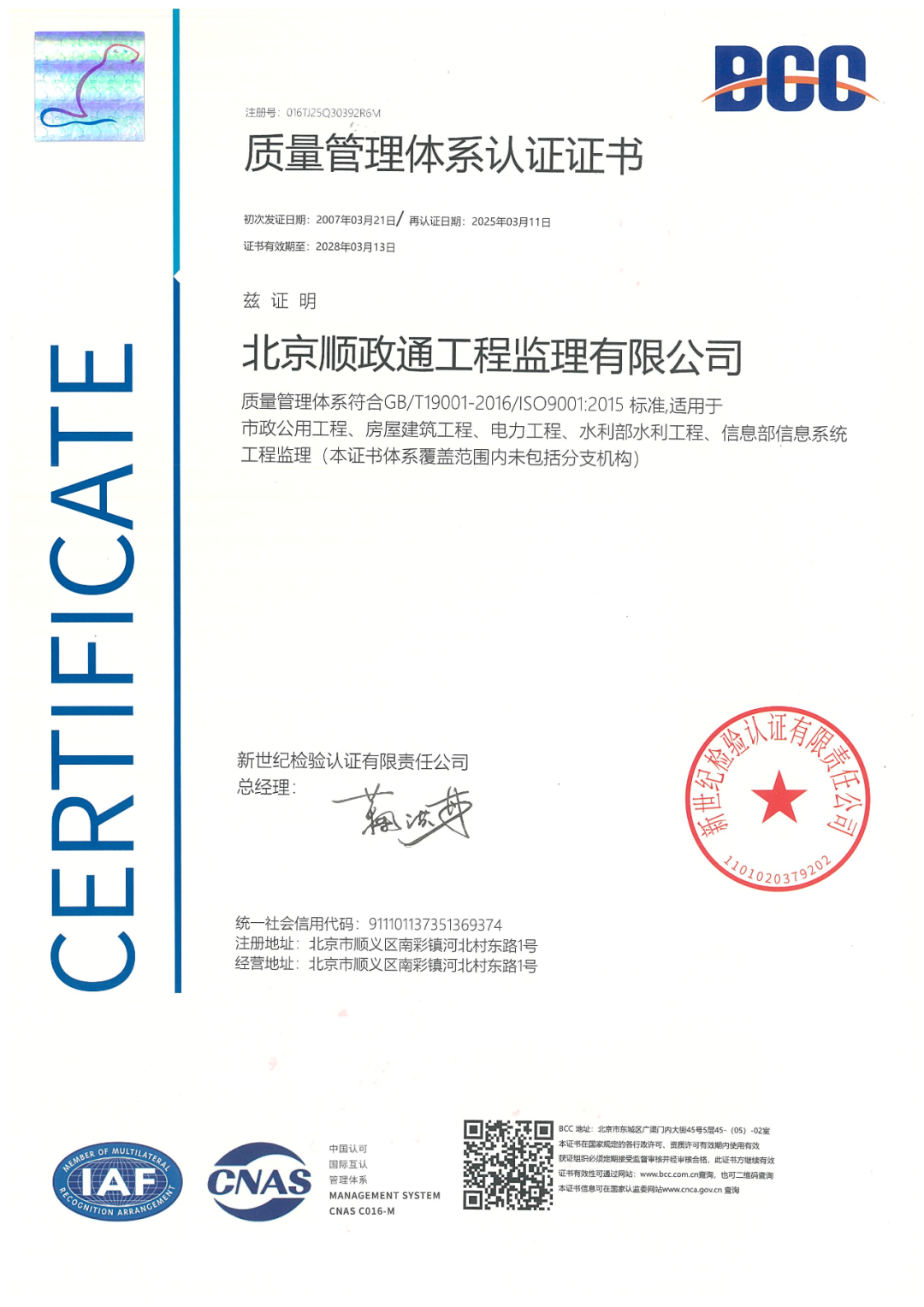 北京順政通工程監(jiān)理有限公司順利通過管理體系再認證